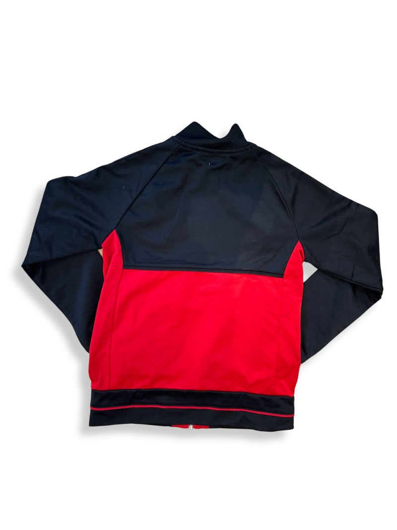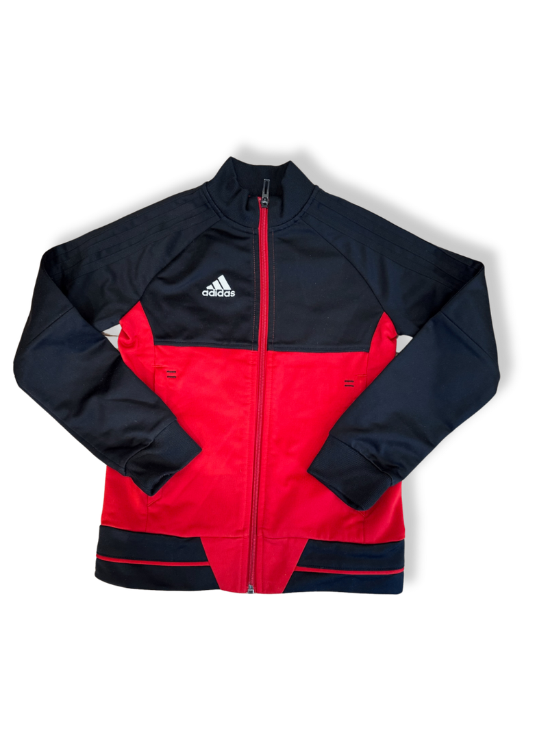 ADIDAS - Sportliche Trainingsjacke in auffälligem Rot mit kontrastierenden schwarzen Ärmeln. Perfekt für das Aufwärmen beim Training oder den lässigen Freizeitlook. Funktionales Design aus atmungsaktivem Polyester sorgt für optimalen Komfort. Ideal für alle, die Sport und Stil verbinden wollen. Verleiht jedem Outfit eine dynamische Note.