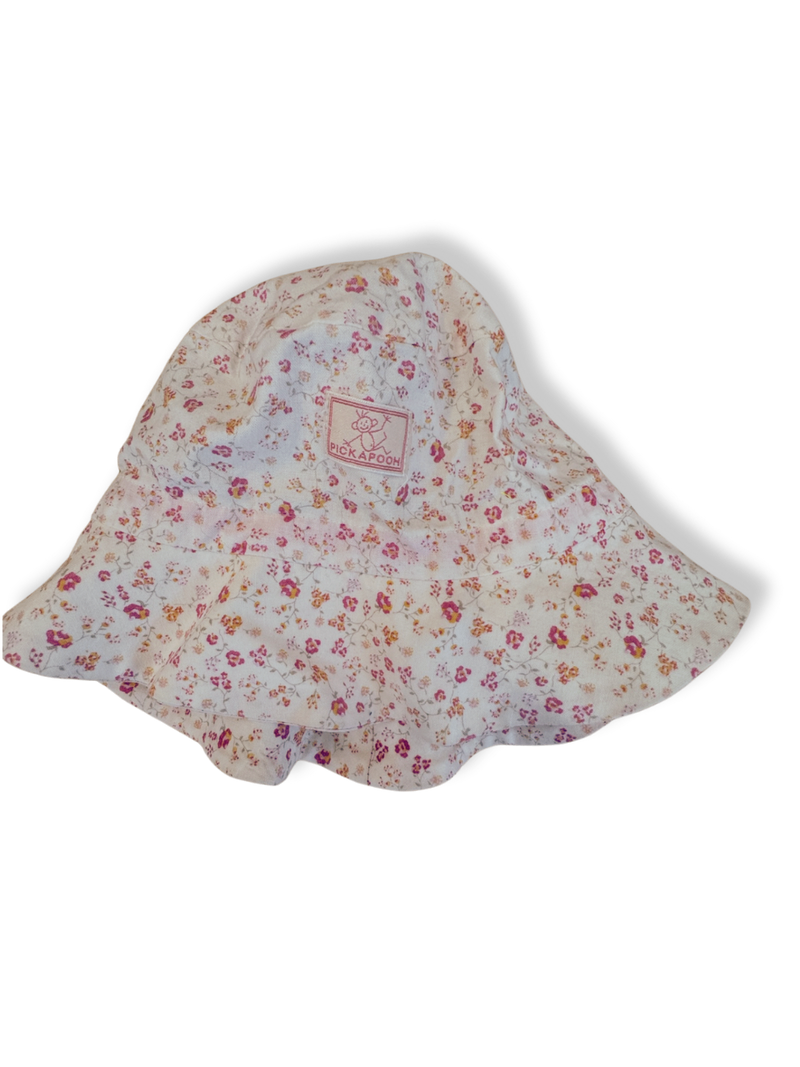 Diese hübsche Sonnehut von Pickapooh vereint Funktion und Stil. Der zarte Blumenprint macht sie zum charmanten Begleiter für den Frühling und Sommer. Ideal geeignet, um das Köpfchen vor Sonne zu schützen. Perfekt für kleine Köpfe, die stylisch und geschützt unterwegs sein wollen.