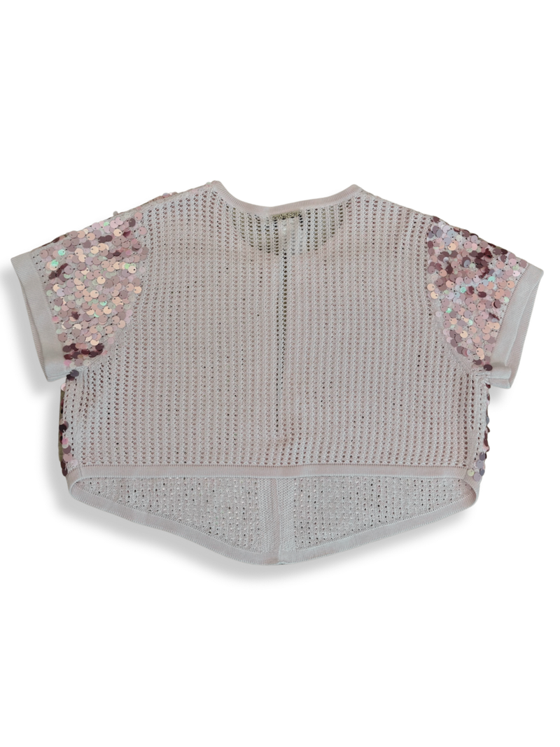 Diese ärmellose T-Shirt aus zartem Netzstoff sticht durch ihre schimmernden Pailletten an den Schultern hervor. Der lockere Schnitt macht sie zum idealen Begleiter für sommerliche Tage oder lässige Abende. Die filigrane Gestaltung verbindet Trend mit femininem Flair. Ob zum Jeanslook oder als Highlight im Layering, dieses Top setzt stilvolle Akzente.