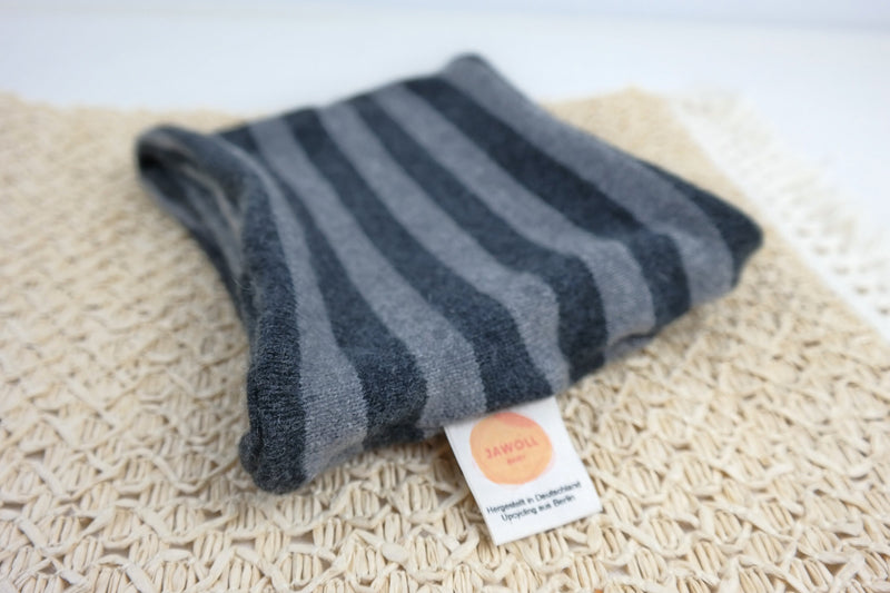 Durch Upcycling rettet Jawoll Baby das wertvolle Material Wolle und macht es wieder nutzbar, wie hier als kuscheliger und super weicher Schal für den Winter oder Übergangszeiten.