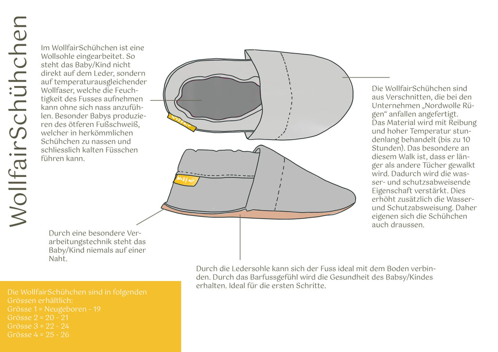 Die Wollfairschühchen gibt es in Größe 1 bis 4.