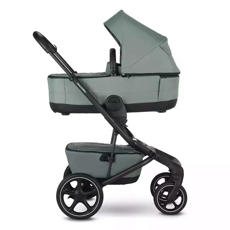 Die easywalker Wanne sitzt hoch auf dem Jimmey Kinderwagengestell und kann mit Hilfe von separat erhältlichen Höhenadaptern noch weiter erhöht werden, wenn du deinem Neugeborenen noch näher sein möchtest. Der Spielbügel dient zudem als Tragegriff und kann abgenommen werden, um dein Baby hineinzulegen. Die Stoffe der Wanne wurden aus recycelten PET-Flaschen hergestellt.
