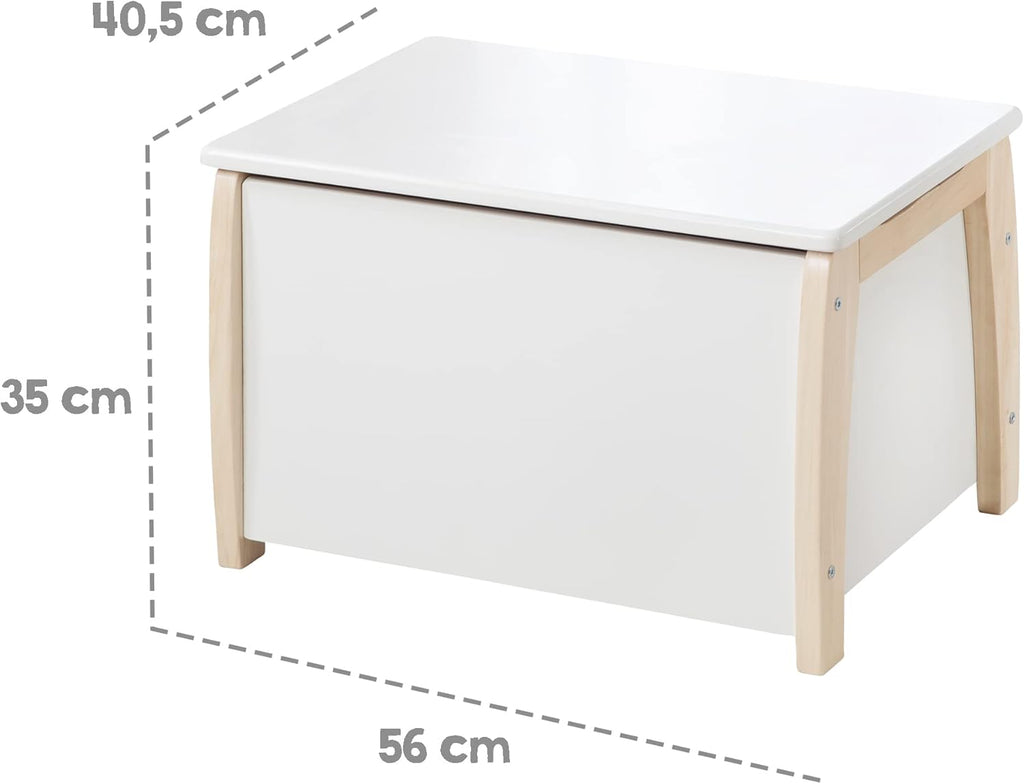 Als Truhensitz mit einer Sitzhöhe von 35 cm und aufklappbarer Sitzfläche bietet der Allrounder Platz für Kinder im Alter von 2 bis 10 Jahren.