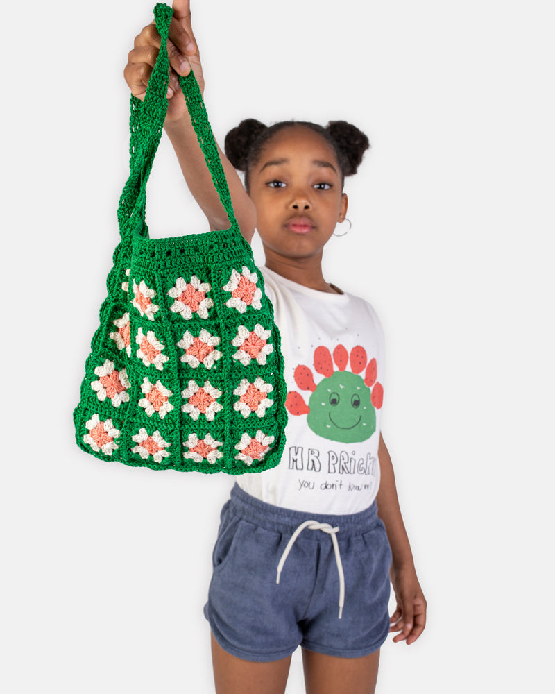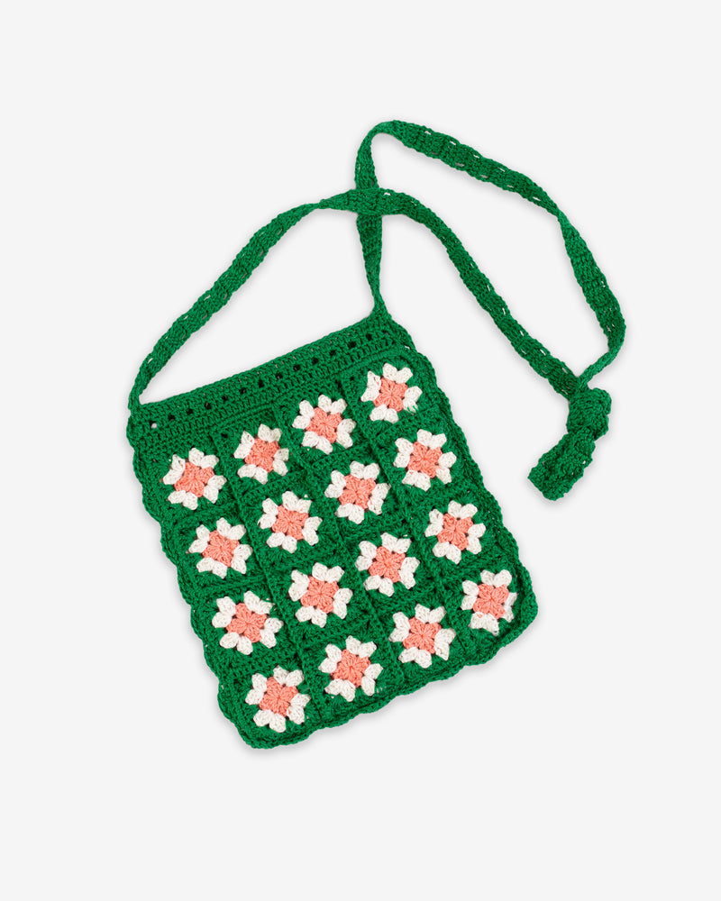 Tasche mit langem Flügel mit einem wertvollen Muster von Quadraten der abuelita:). Gehäkelt von Hand.
