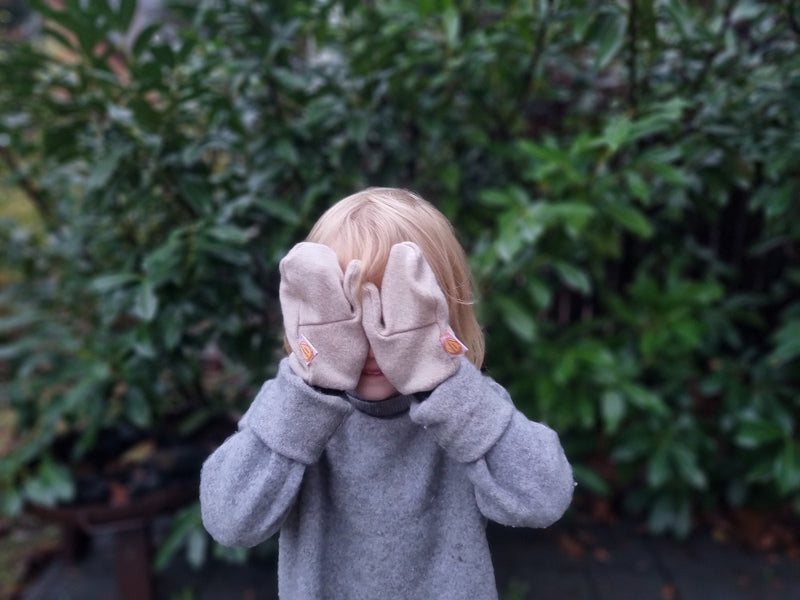 Durch Upcycling rettet Jawoll Baby das wertvolle Material Wolle und macht es wieder nutzbar, wie hier als warme und gleichzeitig weiche Handschuhe für Kinder.