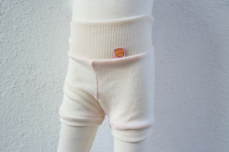 Da die Wolle dehnbar und der Schnitt eher locker ist, kann die Hose lange getragen werden. In der Hose ist genug Platz für alle Windelarten.