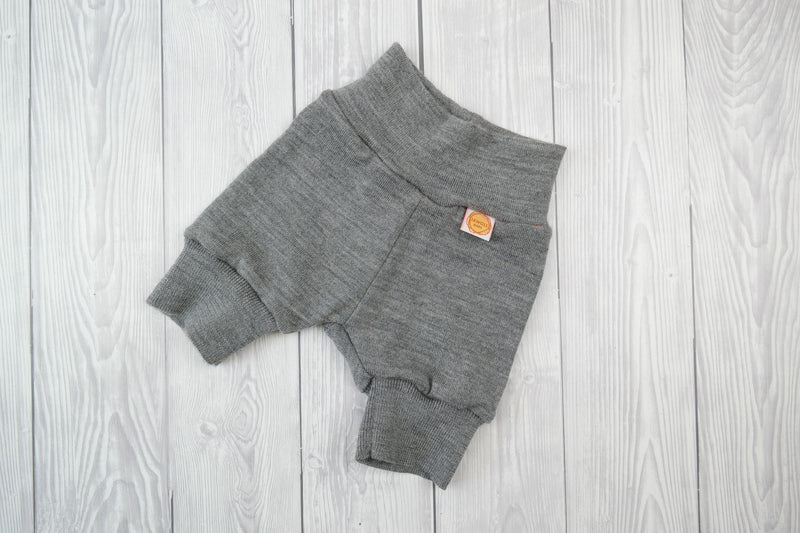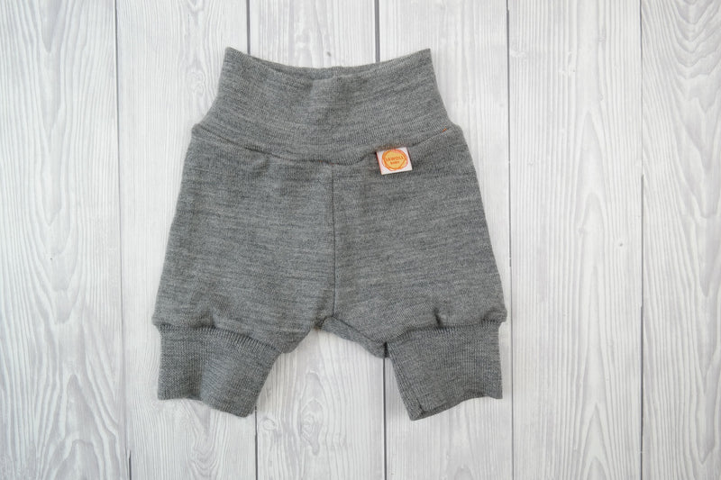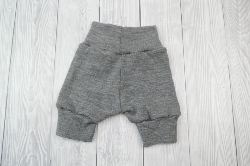 Kurze Hose für Neugeborene Babys Größe 50/56 in Grau aus einem geretteten Wollpullover.