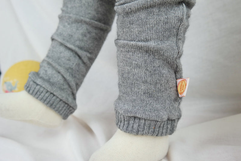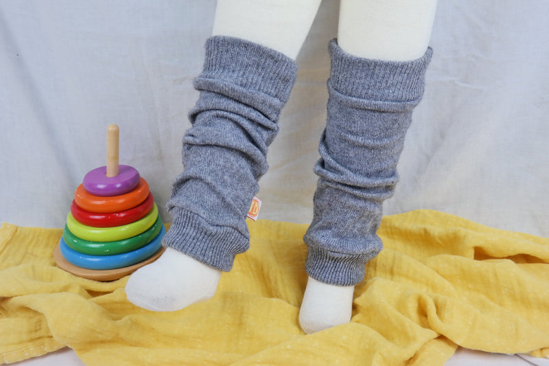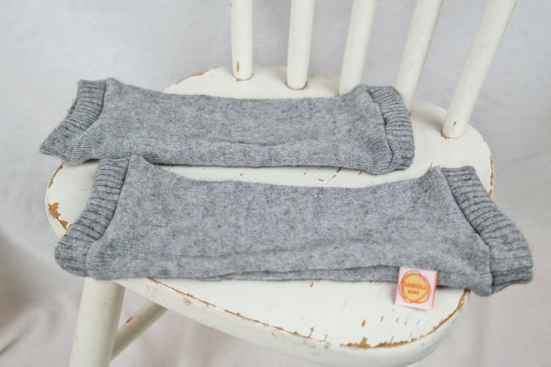 Diese Stulpen in Grau für Kleinkinder waren mal ein Pullover aus Kaschmir (45%) und Seide (55%) - und sind daher kuschelig weich.
