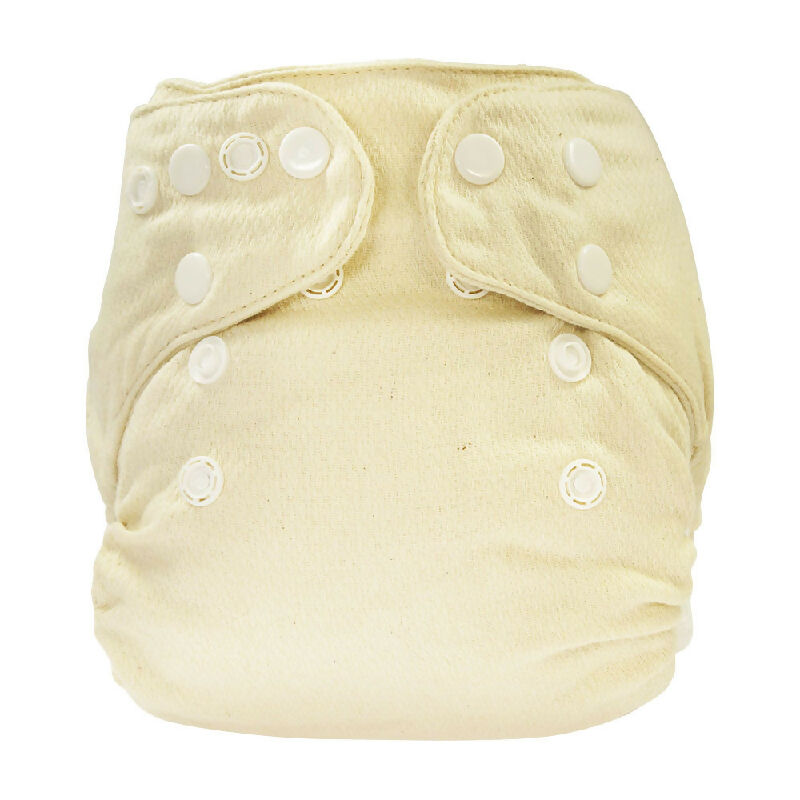 Sehr schlank sitzende, natürliche, ungebleichte Bio-Baumwoll-Höschenwindeln aus Birdseye-Prefold-Stoff. Dieser Stoff hat eine strukturierte Oberfläche im Karo-Muster, die die Feuchtigkeit besonders gut ins Innere leitet. Mit eingenähtem Saugkern.