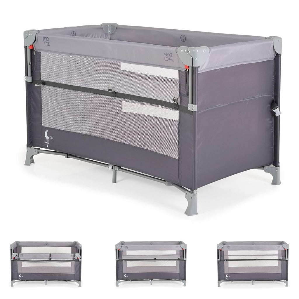 Das Reisebett Next Level von Moni ist ein echter Allrounder. Es verfügt über zwei Ebenen und ist für Kinder ab Geburt bis maximal 14 Kilogramm geeignet. Die obere Ebene ist ideal für Neugeborene bis zu einem ungefähren Alter von 4 Monaten. Sobald Ihr Kind alleine sitzen kann, sollte die obere Ebene des Reisebettes entfernt werden. Eine Seite lässt sich zur Hälfte herunterklappen, was Ihnen eine Verwendung als Beistellbett ermöglicht. Wird das Reisebett nicht benötigt, lässt es sich platzsparend zusammenklappen und in der Tragetasche verstauen. Egal ob auf Reisen oder zu Hause, mit diesem Bett sind Sie jederzeit bestens ausgestattet.Besonderheiten Artikel Moni Reisebett Next Level, 2 Ebenen, Matratze, Seite zum klappen, Beistellbett:Altersempfehlung: ab GeburtMaximalgewicht: 14 kgSpiel und Spaß auf zwei EbenenObere Ebene für Kinder ab Geburt bis ungefähr 4 Monate, oder bis sie allein sitzen können2 große Sichtfenster zur Überwachung Ihres Kindes1 Seite zur Hälfte zum HerunterklappenFunktion als BeistellbettMatratze mit einer Dicke von 1,5 cmTragetasche mit Henkel enthaltennimmt wenig Platz wegleichter Auf- und AbbauWeitere Informationen zum Artikel Moni Reisebett Next Level, 2 Ebenen, Matratze, Seite zum klappen, Beistellbett:Artikelgewicht: 9,3 kgArtikelmaße: L 125 x B 65 x H 74 cmMaße Versandkarton: L 77 x B 24 x H 23 cmVersandgewicht: 9,48 kgMaterial: 100 % Polyester