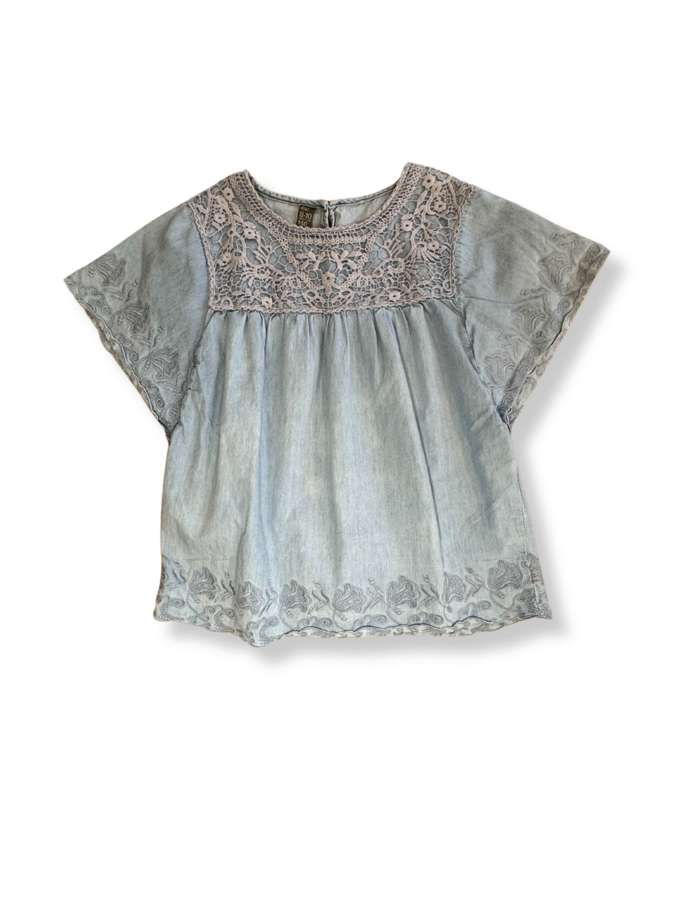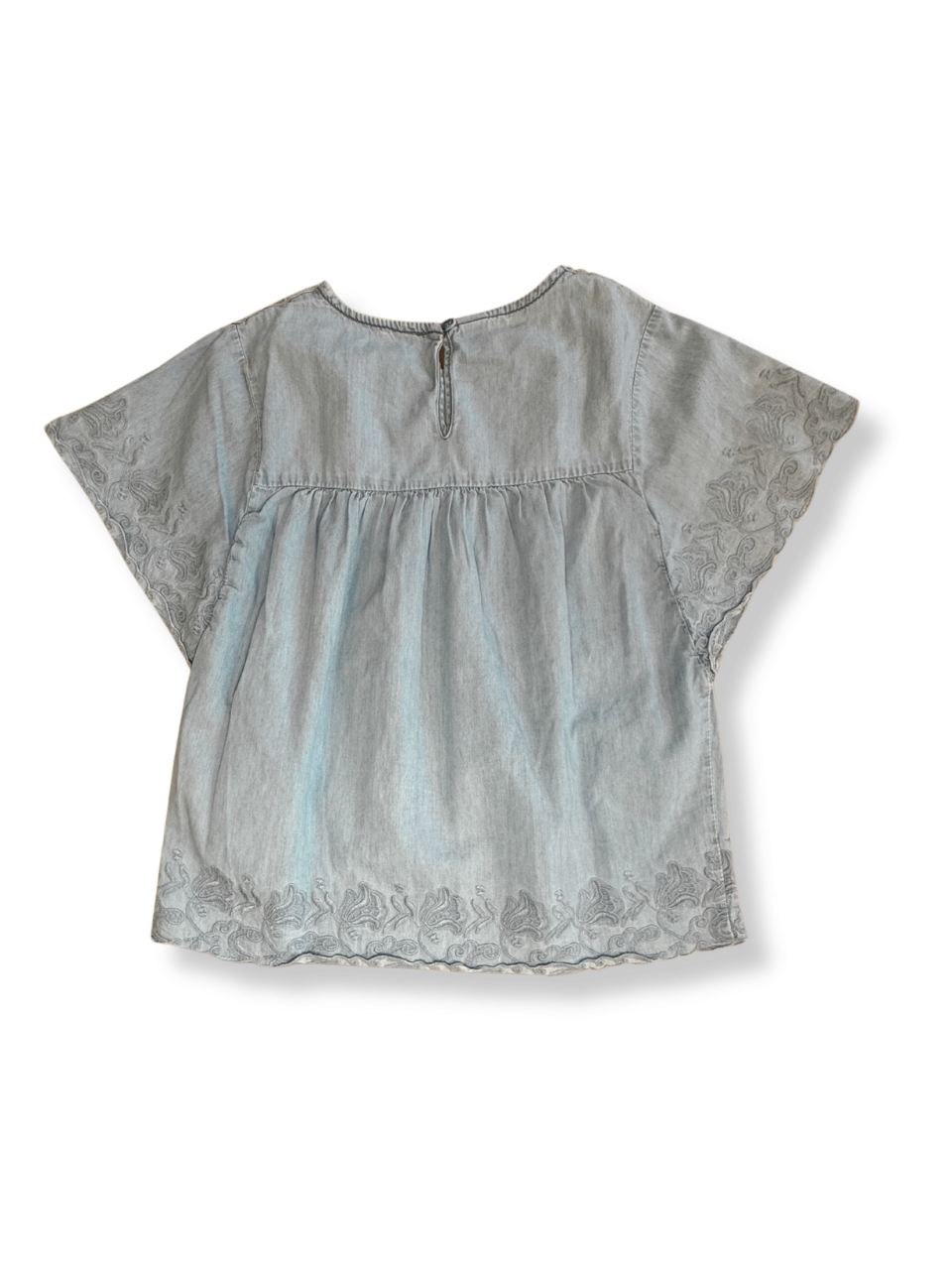 Diese hellblaue Bluse überzeugt durch ihren legeren Schnitt und die feinen Stickereien, die ihr eine romantische Note verleihen. Der runde Ausschnitt und die kurzen Ärmel sorgen für ein angenehmes Tragegefühl. Kombiniere sie mit Jeans oder einem Rock. Ideal für wärmeres Wetter, sorgt sie für die nötige Leichtigkeit.
