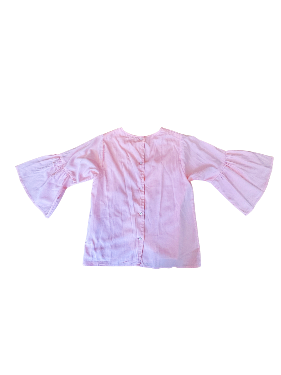 Dieses entzückende Bluse aus hochwertiger Baumwolle in zartem Hellrosa ist perfekt für dein Kind. Mit ihren flatternden 3/4-Ärmeln und Knopfverschluss präsentiert sie sich stilvoll und angenehm auf der Haut. Ideal für den Frühling und Sommer, vereint sie Komfort mit liebevollem Design. Du suchst eine langlebige, schicke Bluse, die auch schon getragen wurde, aber in ausgezeichnetem Zustand ist.