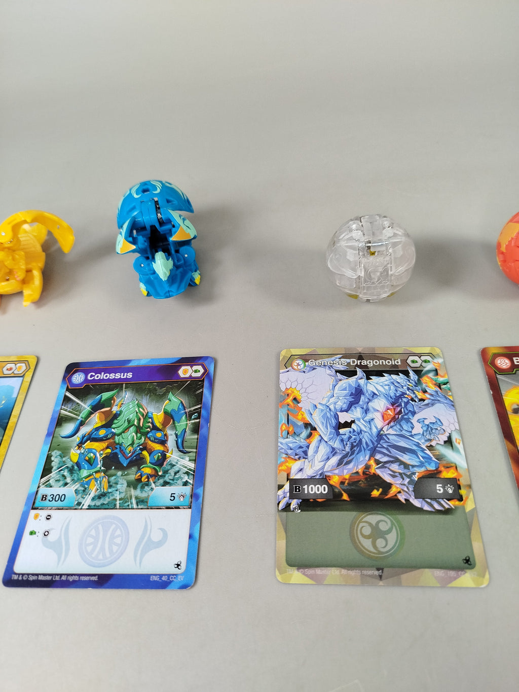 Hol dir das Bakugan Figuren-Set mit 6 detailreichen Bakugan und passenden Charakterkarten für spannendes Action-Spiel. Enthalten sind Ferascal in Weiß-Blau, Auxillataur in Gelb, Colossus in Blau und weitere Figuren, jeweils mit zugehöriger Karte. Alle Teile sind ca. 4 cm groß und befinden sich in neuem Zustand. Das Set ist in einem sehr guten gebrauchten Zustand, die leichte Abnutzung der Komponenten zeigt, mit diesen Spielsachen wurde gerne gespielt. Gib diesem Spielzeug ein neues Zuhause und unterstütze die Wiederverwendung von Spielwaren. Hinweis: Nicht für Kinder unter 3 Jahren geeignet, da Kleinteile verschluckt werden können.