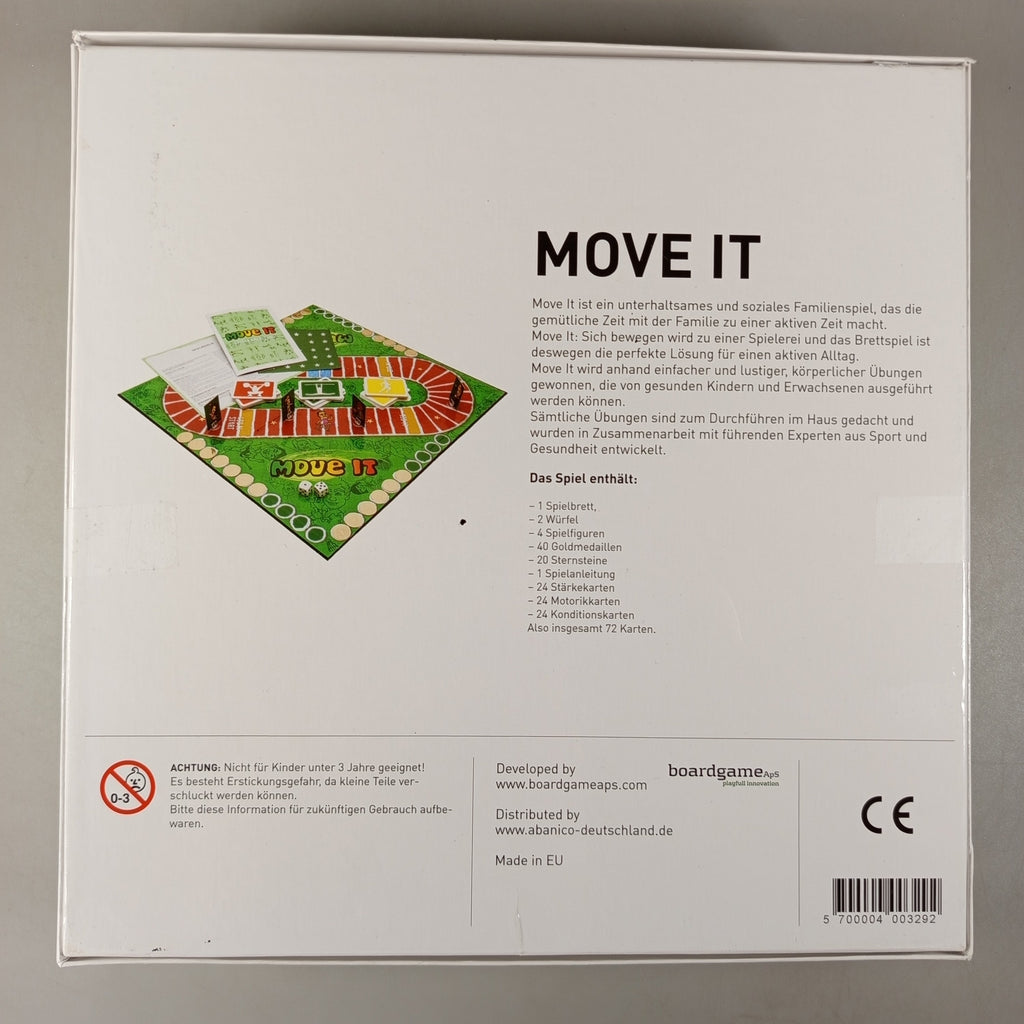 Hol dir das aktive Familienspiel Move It und bring Bewegung, Spaß und gemeinsames Lachen an den Spieltisch! Dieses Brettspiel ist für 2–8 Spieler ab 6 Jahren ausgelegt und bietet ca. 45 Minuten actionreichen Spielspaß, bei dem Aktivität klar im Mittelpunkt steht. Enthalten sind die originale Spielbox, ein faltbarer Spielplan, eine Spielanleitung, ein zusätzliches Regelheft sowie zwei ungestanzte Stanzbögen mit insgesamt 65 Spielmarken, davon 40 goldfarbene Marker und 25 grüne Marker mit weißen Sternen. Das Spiel ist vom Deutschen Olympischen Sportbund (DOSB) empfohlen und eignet sich ideal für Familienabende oder Gruppenrunden, bei denen Bewegung gefragt ist. Gib diesem Spiel ein neues Zuhause und schenke ihm ein zweites Leben voller Spielspaß. Das Spiel befindet sich in einem sehr guten gebrauchten Zustand. Der Lieferumfang ist vollständig. Verpackung ist original vorhanden. Hinweis gemäß GPSR: Enthält Kleinteile, nicht geeignet für Kinder unter 3 Jahren – Erstickungsgefahr.