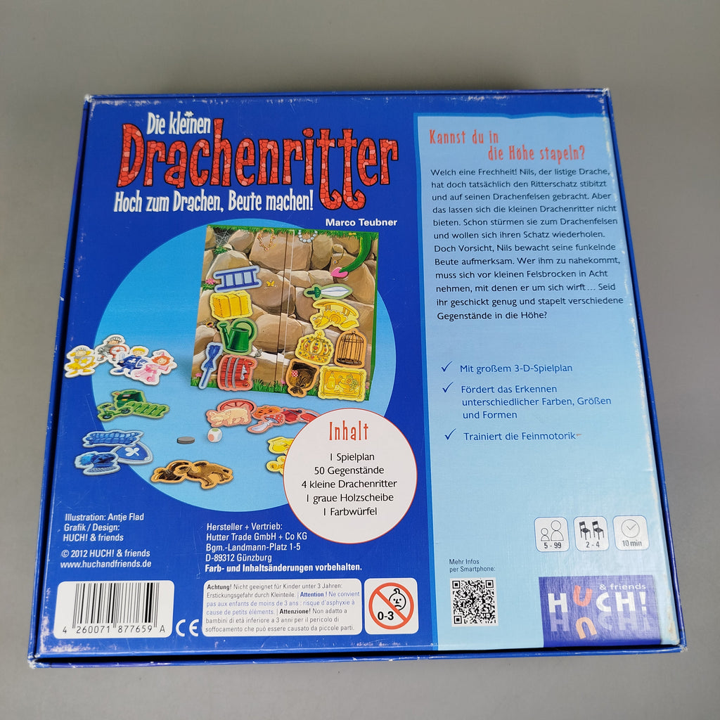 Hol dir das spannende Brettspiel „Die kleinen Drachenritter – Hoch zum Drachen, Beute machen!“ von Marco Teubner und meistere mutige Abenteuer am Drachenfelsen. Das Spiel bietet 2 bis 4 Spielern ab 5 Jahren etwa 10 Minuten Spielspaß mit einem 3-D-Spielplan, vier Drachenreiter-Figuren, 50 Farbplättchen, einem Felsbrocken und einem Farbwürfel. Verpackung vorhanden, Anleitung liegt bei. Das Spiel befindet sich in gutem gebrauchten Zustand mit leichten Gebrauchsspuren. Die Vollständigkeit konnte nicht überprüft werden. Hinweis: Nicht für Kinder unter 3 Jahren geeignet – Erstickungsgefahr wegen verschluckbarer Kleinteile.