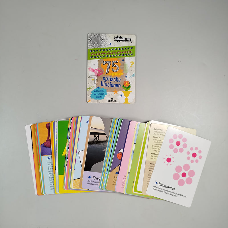 Zwei spannende Kartenspiele in einem Bundle! Dieses Set enthält das unterhaltsame Wissensspiel Das Quiz der Pferde und Ponys sowie das faszinierende Kartenset 75 supercoole optische Illusionen. Während Pferdefans ihr Wissen zu Rassen, Reitdisziplinen und Pflege testen können, erleben neugierige Entdecker visuelle Täuschungen und spannende Wahrnehmungstricks. Perfekt für Kinder und Familien, die Spaß am Lernen haben!