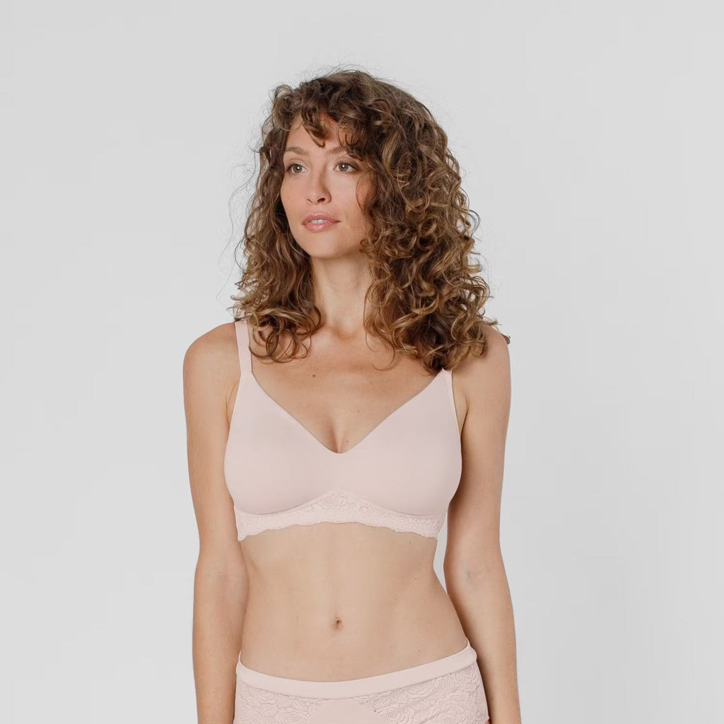 Elisabeth – der erste BH von erlich textil mit gemoldeten -also mit vorgeformten- Cups! Guter Halt wird bei unserer Elisabeth nicht nur durch die breiten Träger, sondern auch durch das feste Baumwollgestrick bewirkt – und das ganz ohne Bügel. Das enganliegende Unterbrustband aus Spitze sorgt außerdem für einen schönen Abschluss. Durch den verstellbaren Verschluss lässt sich die Elisabeth auch in den Umfängen variieren.