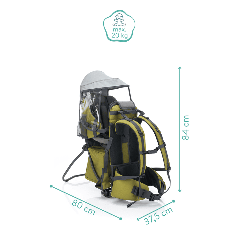 - großes Wetterschutzdach schützt dein Kind vor Sonne und Regen