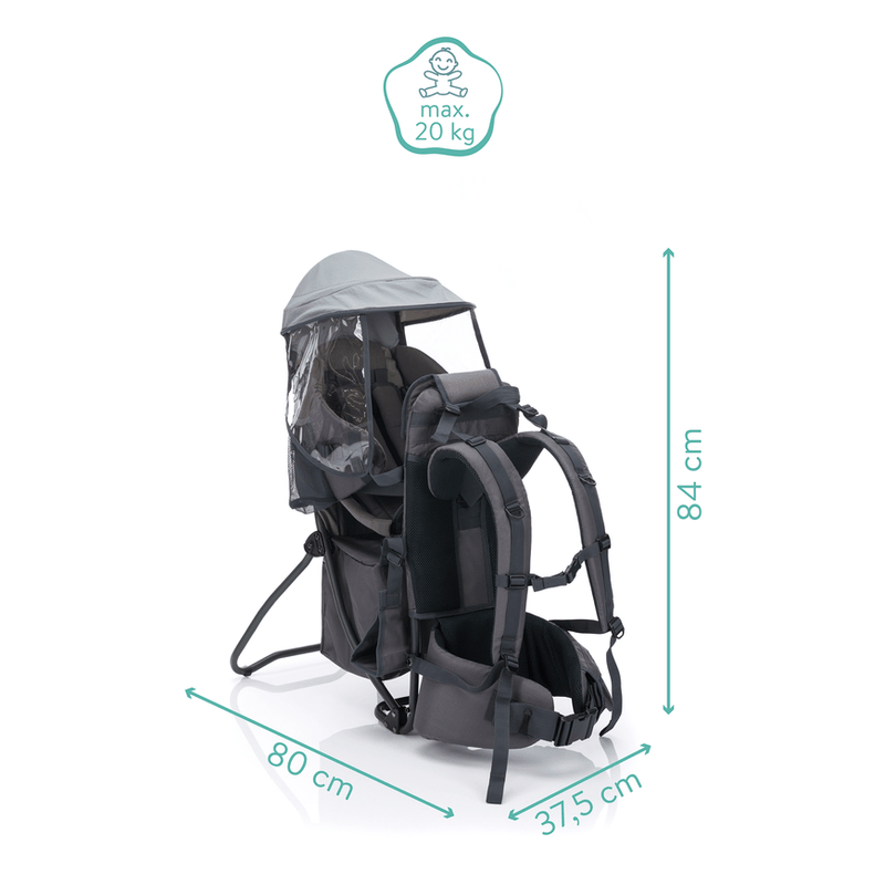 - großes Wetterschutzdach schützt dein Kind vor Sonne und Regen