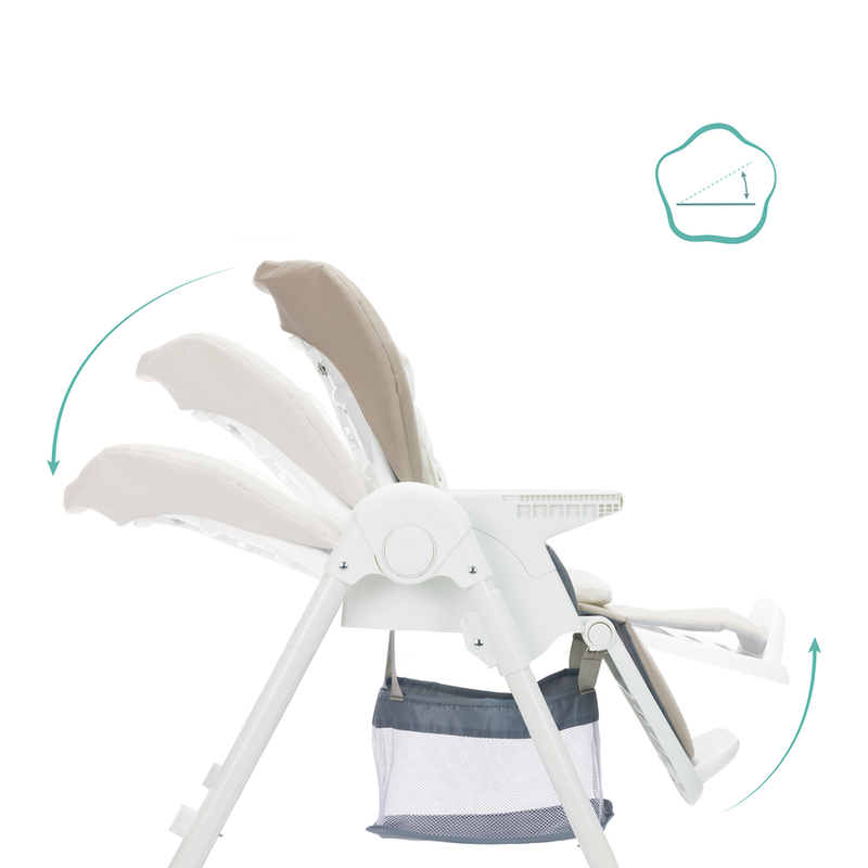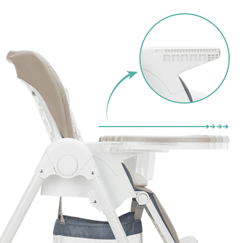 Ein montierbares Essbrett, das bei Nichtgebrauch einfach abgenommen werden kann, macht den Mio besonders vielseitig. Dein kleiner Schatz kann sein Festmahl direkt auf dem Hochstuhl zu sich nehmen. Und falls doch mal etwas daneben geht, kann die Einlage ganz einfach abgenommen und gewaschen werden – denn Missgeschicke können passieren. Doch wie wir wissen, kann Essen auch müde machen. Damit sich dein Kind nach der Mahlzeit entspannen kann, hast du die Möglichkeit, den Hochstuhl in eine Liegeposition zu verstellen.