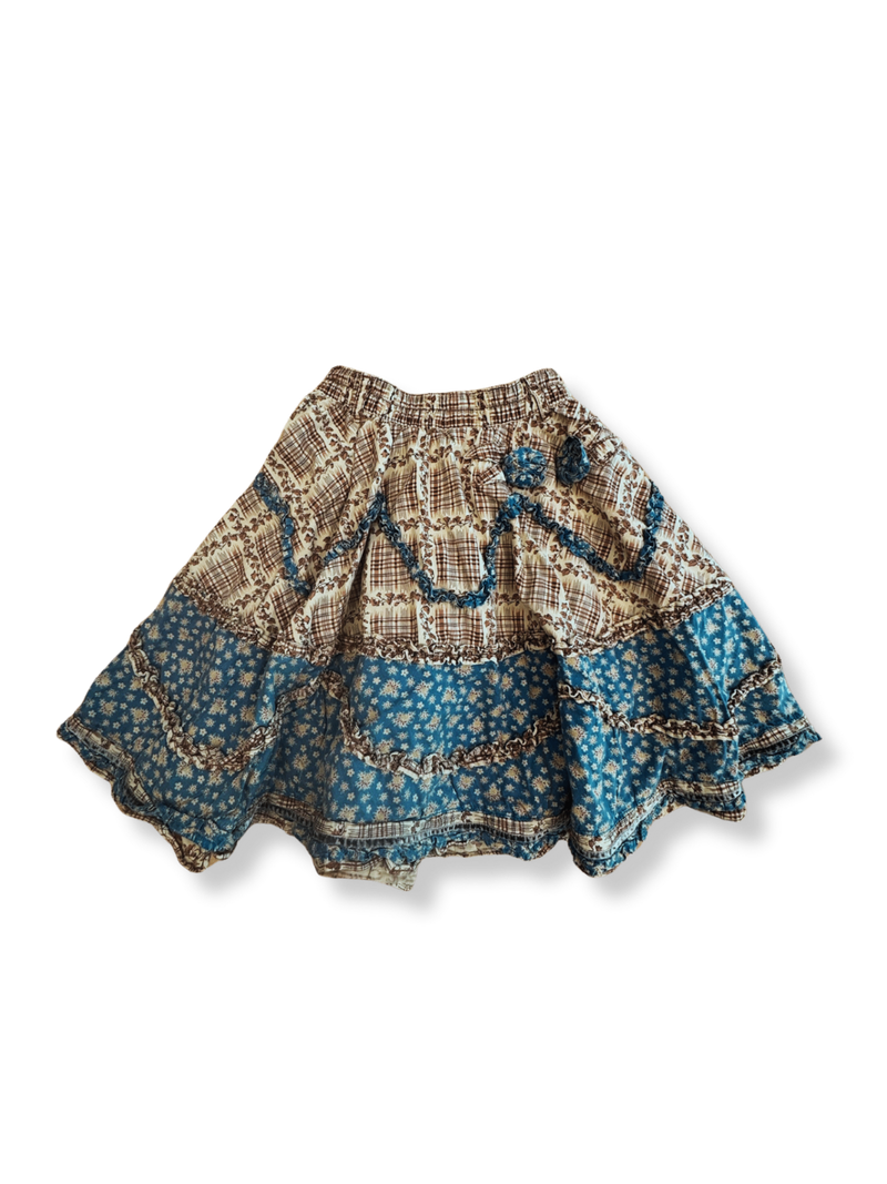 Ein verspielter Rock mit romantischem Vintage-Charme. Perfekt für einen sonnigen Tag, kombiniert er Muster und Farben, die sowohl sommerlich als auch einzigartig sind. Mit elastischem Bund für bequemen Sitz. Das florale Design und die Kombination aus Blau und Beige verleihen ihm einen Hauch von Nostalgie.