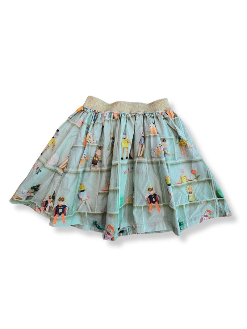 Ein verspielter Rock mit luftigem Overlay, das mit bunten, kindlichen Figuren bedruckt ist. Der elastische Bund sorgt für angenehmen Sitz, während das leichte Material ideal für den Frühling und Sommer ist. Perfekt für modebewusste Kinder, die einen farbenfrohen Akzent setzen möchten.