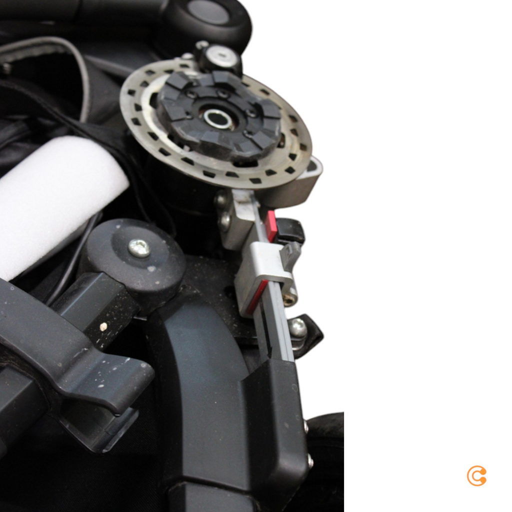 - handbetätigte Scheibenbremse für eine bessere Kontrolle in starkem Gefälle