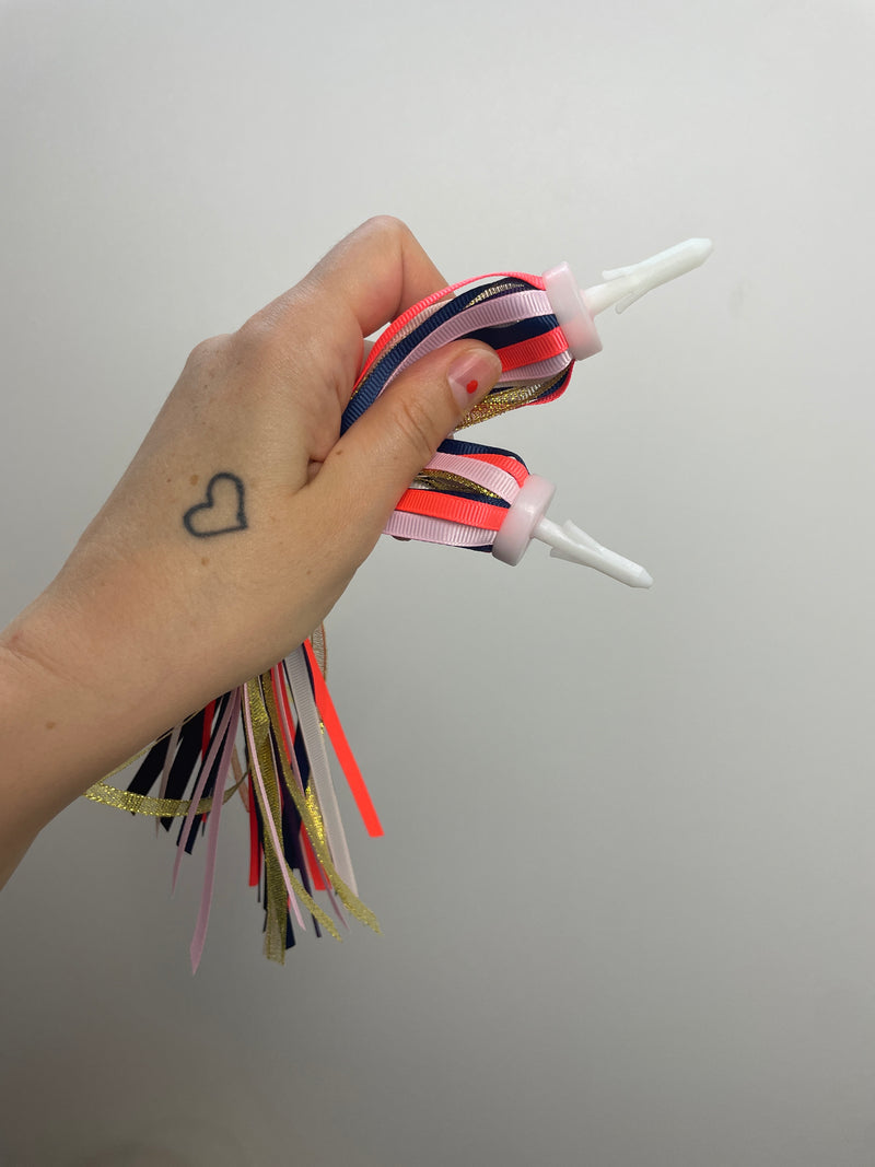 Ein Paar hübscher, bunter Quasten, mit denen sich Fahrräder, Roller und andere Kinderfahrzeuge verschönern lassen. Aus der beliebten Kollektion Fairies in the Garden.