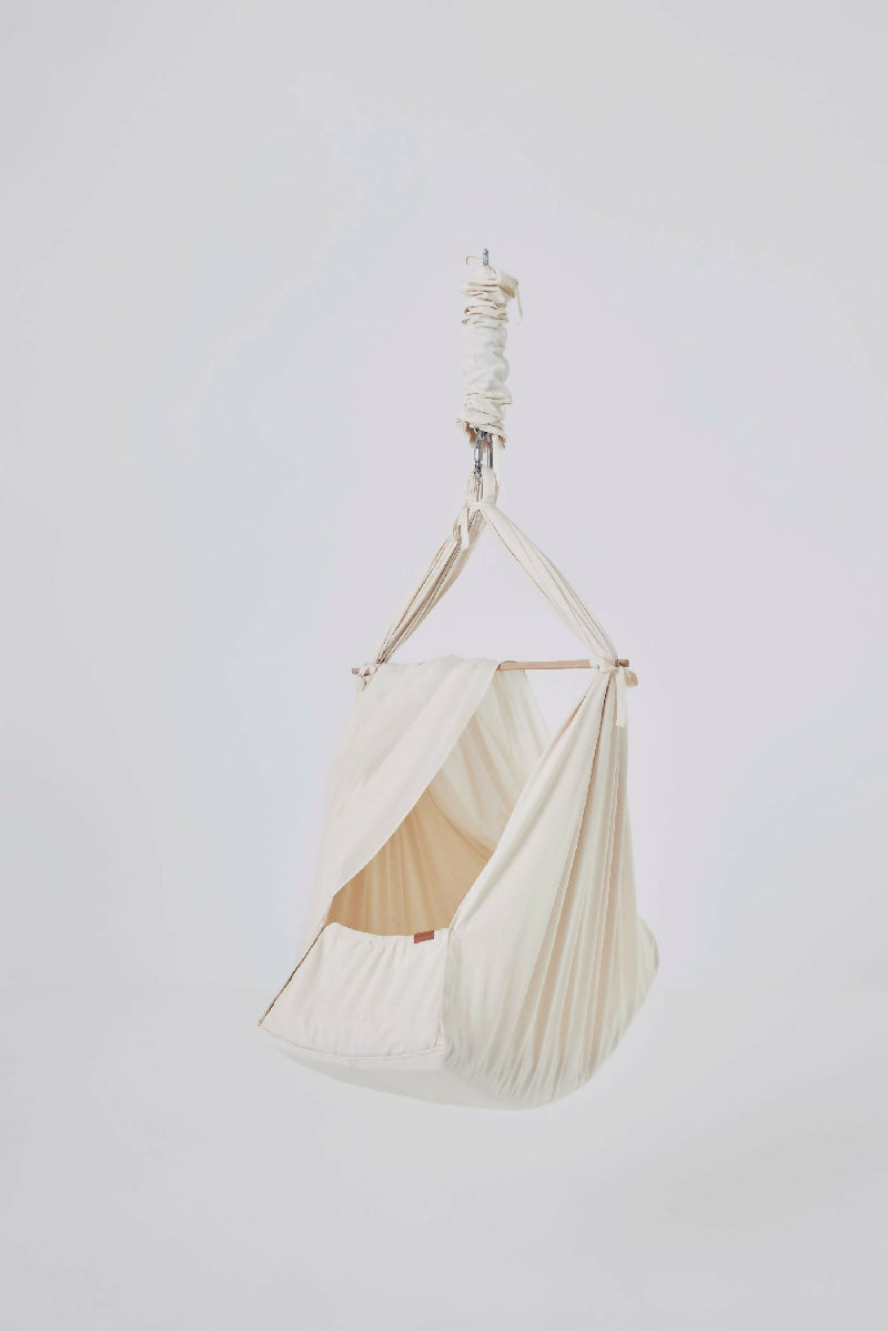 Die Federwiege Premium ist aus  Twill aus 100% Bio-Baumwolle hergestellt, die sich sanft um das Baby schmiegt und ihm ein Gefühl von Geborgenheit gibt - und an den Mutterleib erinnert. Die Matratze besteht aus 100% Öko-Wolle, Matratzenbezug und Laken aus 100% Öko-Baumwolle.