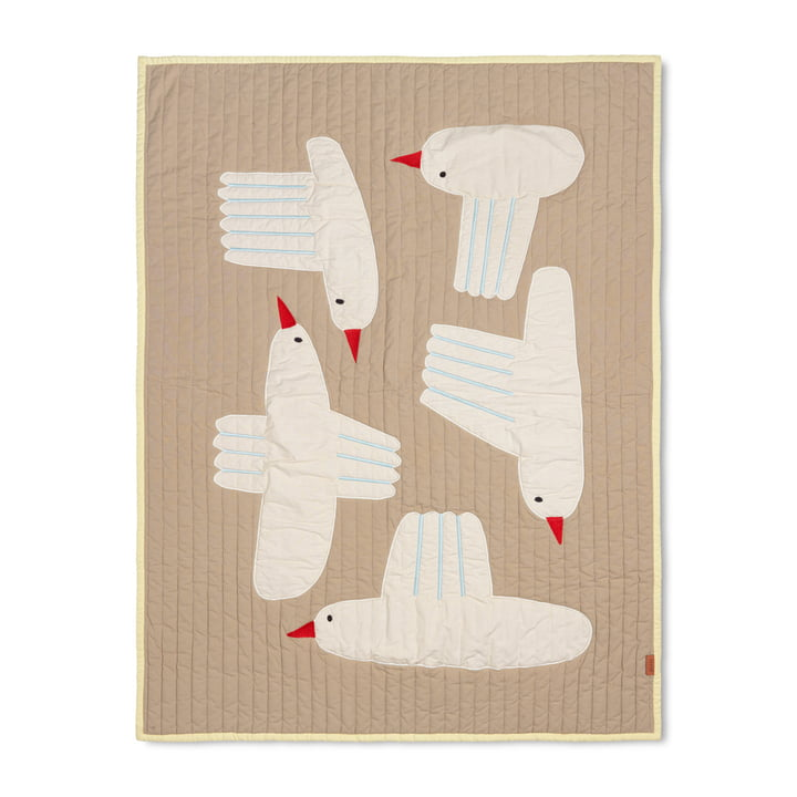 Die Bird Qulited Decke des dänischen Labels ferm Living ist mit ihrem liebevollen Design eine großartige Ergänzung für das Kinderzimmer. Die Vögel werden mit einer aufwändig auf den Stoff genäht, sodass die Ziernähte den Elementen einen überaus detaillierten Ausdruck verleihen. Die Decke wird aus Bio-Baumwolle hergestellt und mit recyceltem Polyester gepolstert. Pflegehinweis: Bei 30°C Schonwäsche reinigen. Optimal kombinierbar mit dem Bird Kissen.