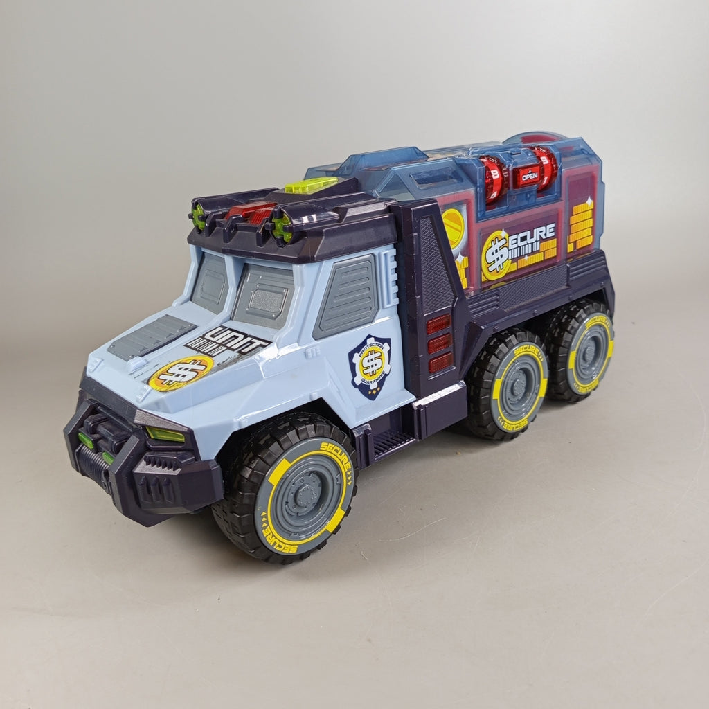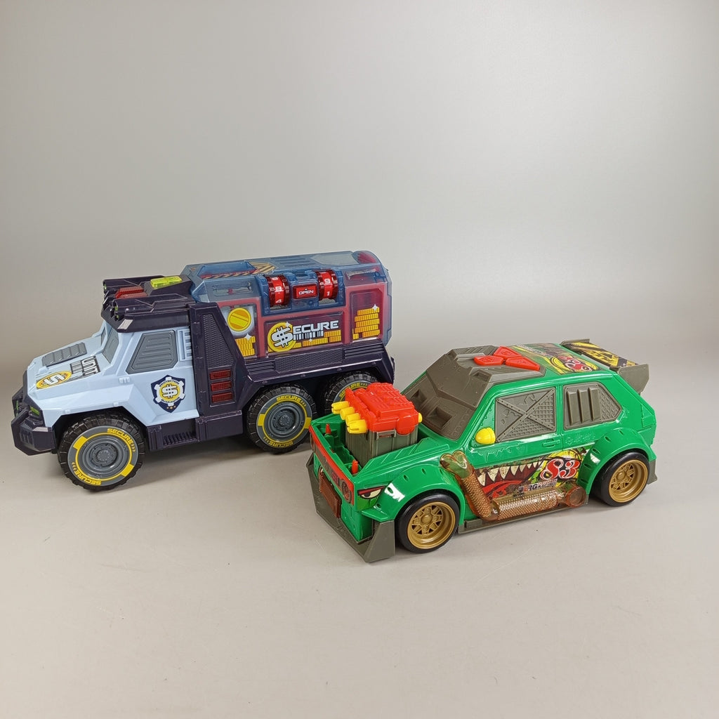 Hol dir das Fahrzeug-Set mit Polizei- und Rennwagen für actiongeladene Spielmomente! Das Set enthält zwei detailreiche Fahrzeuge: ein größeres Polizeifahrzeug mit der Aufschrift ‚SECURE UNIT‘ und ein kleineres Rennfahrzeug mit Hai-Motiv und der Zahl 83. Beide bestehen aus robustem Kunststoff und weisen nur minimale Gebrauchsspuren auf. Verpackung fehlt, aber die Vollständigkeit ist gegeben. Gib diesen Fahrzeugen ein neues Zuhause und freu dich auf rasante Abenteuer! Das Set befindet sich in einem sehr guten gebrauchten Zustand. Sicherheitshinweis: Nicht für Kinder unter 3 Jahren geeignet, da Kleinteile verschluckt werden können.