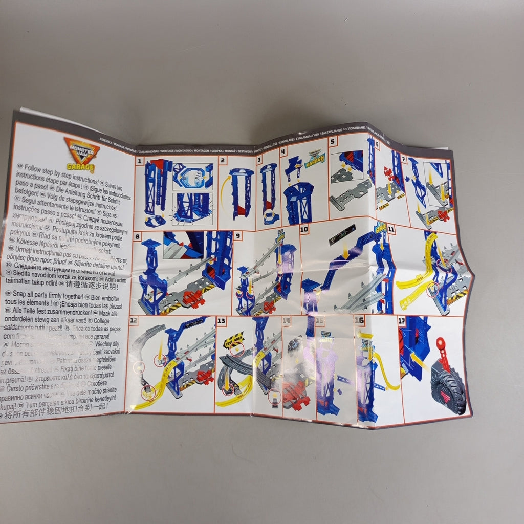 Hol dir die Monster Jam Garage und erlebe packende Action wie in der Arena! Dieses Spielset besteht aus mehreren Kunststoffteilen, darunter Rampe, Fahrspuren und Aufzug. Die Anleitung ist enthalten, die Originalverpackung fehlt. Das Spielzeug zeigt geringe Gebrauchsspuren und befindet sich in gutem Zustand. Die Vollständigkeit konnte nicht überprüft werden. Perfekt für Fans von Monster Trucks und kreatives Spielvergnügen. Hinweis: Nicht für Kinder unter 3 Jahren geeignet, da Kleinteile verschluckt werden können.