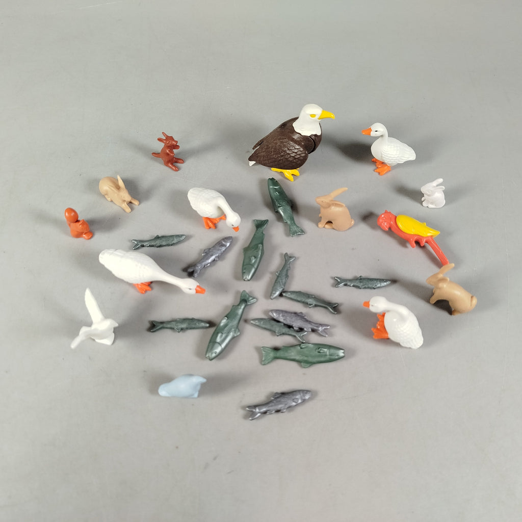 Hol dir das Playmobil Tierset mit 20 detailreichen Tier- und Vogelfiguren, darunter Adler, Gänse, Hasen, Eichhörnchen, Rehe und verschiedene bunte Vögel. Perfekt für kreatives Spielen und Erweiterung von Bauernhof- oder Wildtierwelten. Das Set befindet sich in sehr gutem gebrauchten Zustand. Gib diesen Figuren ein neues Zuhause und fördere nachhaltiges Spielen. Achtung: Nicht für Kinder unter 3 Jahren geeignet, da Kleinteile verschluckt werden können.