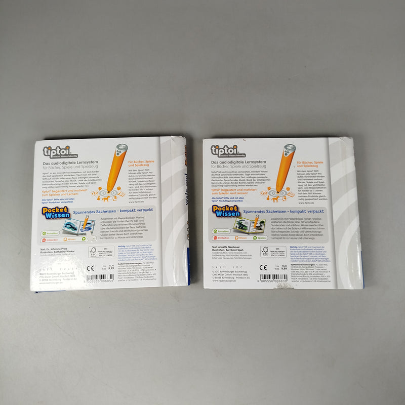 Hol dir die interaktiven Ravensburger tiptoi Pocket Wissen Bücher 'Wale und Delfine' und 'Dinosaurier' für spannende Lernmomente. Beide Bücher bieten kindgerechte Aufgaben und Spiele rund um die Themen Meer und Urzeit, perfekt für kleine Entdecker ab 4 Jahren. Die Bücher sind mit dem tiptoi Stift kompatibel und fördern spielerisch Wissen. Die Artikel befinden sich in sehr gutem gebrauchten Zustand mit minimalen Gebrauchsspuren. Gib diesen Lernspielen ein neues Zuhause und fördere nachhaltiges Spielen! Sicherheitshinweis: Nicht für Kinder unter 3 Jahren geeignet. Erstickungsgefahr wegen verschluckbarer Kleinteile.
