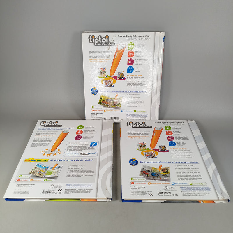 Hol dir das Ravensburger tiptoi Lernbuch-Set mit drei spannenden Büchern: „Entdecke den Bauernhof“, „Sicher im Straßenverkehr“ und „Mein Lern-Spiel-Abenteuer: Erste Buchstaben“. Jedes Buch bietet über 600 Geräusche, Texte und interaktive Aufgaben für spielerisches Lernen. Der tiptoi Stift wird separat benötigt. Die Bücher befinden sich in OVP mit leichten Gebrauchsspuren. Gib diesen tiptoi Büchern ein neues Zuhause und fördere spielerisch Wissen und Sprache. Hinweis: Nicht für Kinder unter 3 Jahren geeignet.