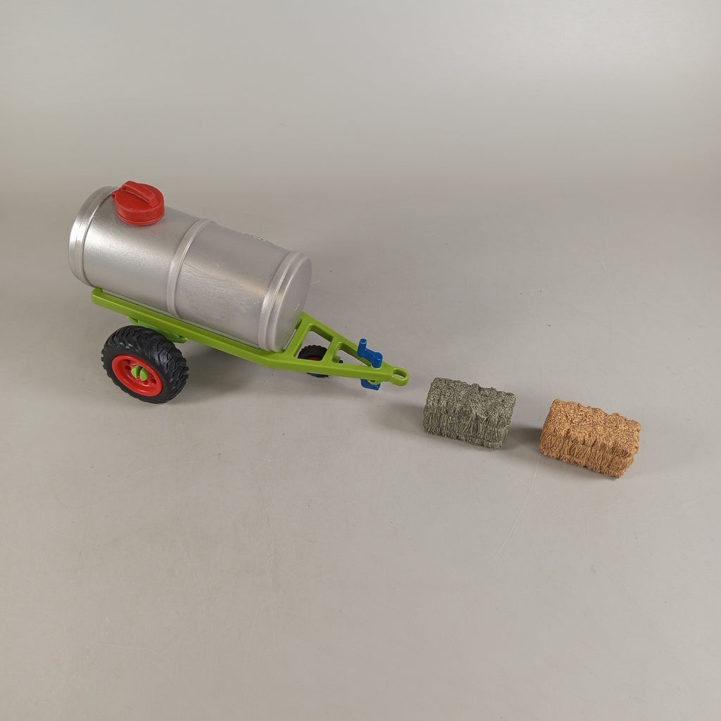 Hol dir das Schleich Bauernhof-Tierfiguren-Set mit 12 Teilen und bring das Landleben ins Kinderzimmer! Enthalten sind 10 detailreiche Kuhfiguren und 2 Heuballen aus Kunststoff. Einige Figuren tragen die Gravur 'Schleich © Germany 2001–2002'. Das Set enthält außerdem einen Anhänger mit silbernem Tank. Das Spielzeug befindet sich in einem sehr guten gebrauchten Zustand mit leichten Gebrauchsspuren. Die Vollständigkeit konnte nicht überprüft werden. Hinweis: Enthält Kleinteile, nicht geeignet für Kinder unter 3 Jahren. Gib diesen liebevoll gestalteten Tieren ein neues Zuhause und fördere kreatives Spielen!