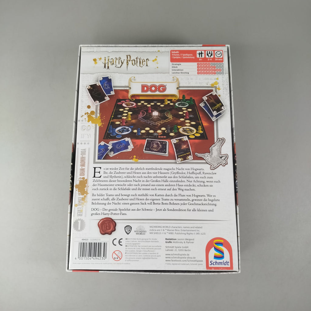 Hol dir das DOG Harry Potter Brettspiel und tauche ein in die magische Welt von Hogwarts! Dieses Familienspiel für 2–4 Spieler bringt den beliebten Klassiker „DOG – Den Letzten beißen die Hunde“ im Wizarding-World-Design auf den Tisch. Enthalten sind ein faltbarer Spielplan, eine Spielanleitung, ein Kartoninlay mit Hogwarts-Wappen und dem Motto „Draco Dormiens Nunquam Titillandus“, ein noch originalverschlossener Beutel mit 16 Spielfiguren in Rot, Blau, Grün und Gelb sowie ein ebenfalls versiegeltes Kartendeck. Das Spiel ist für Kinder ab 8 Jahren geeignet und bietet eine Spieldauer von ca. 30–45 Minuten. Die Originalverpackung ist vorhanden. Das Spiel befindet sich in einem sehr guten gebrauchten Zustand, da alle Spielmaterialien vollständig und unbenutzt wirken. Gib diesem Brettspiel ein neues Zuhause und sorg für spannende Spielrunden mit Familie oder Freunden. Hinweis gemäß GPSR: Enthält Kleinteile, nicht geeignet für Kinder unter 3 Jahren – Erstickungsgefahr!