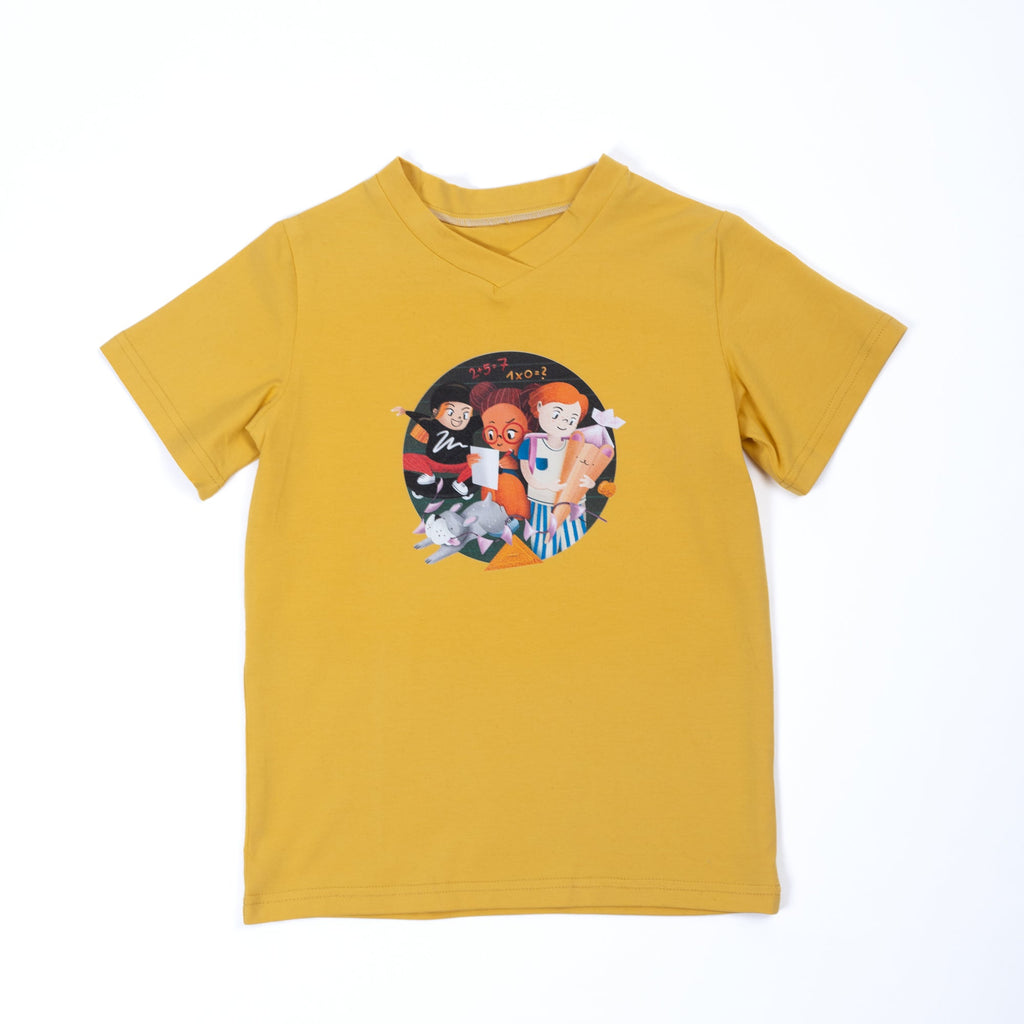 Paua Kids | Unisex Kurzarm-Shirt "Schule" | Bio-Bauwolle | Gelb