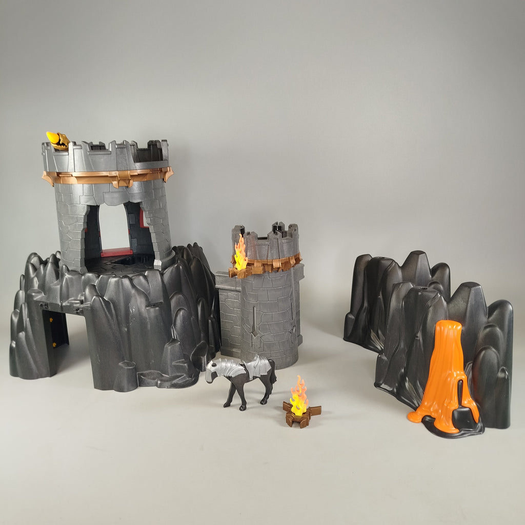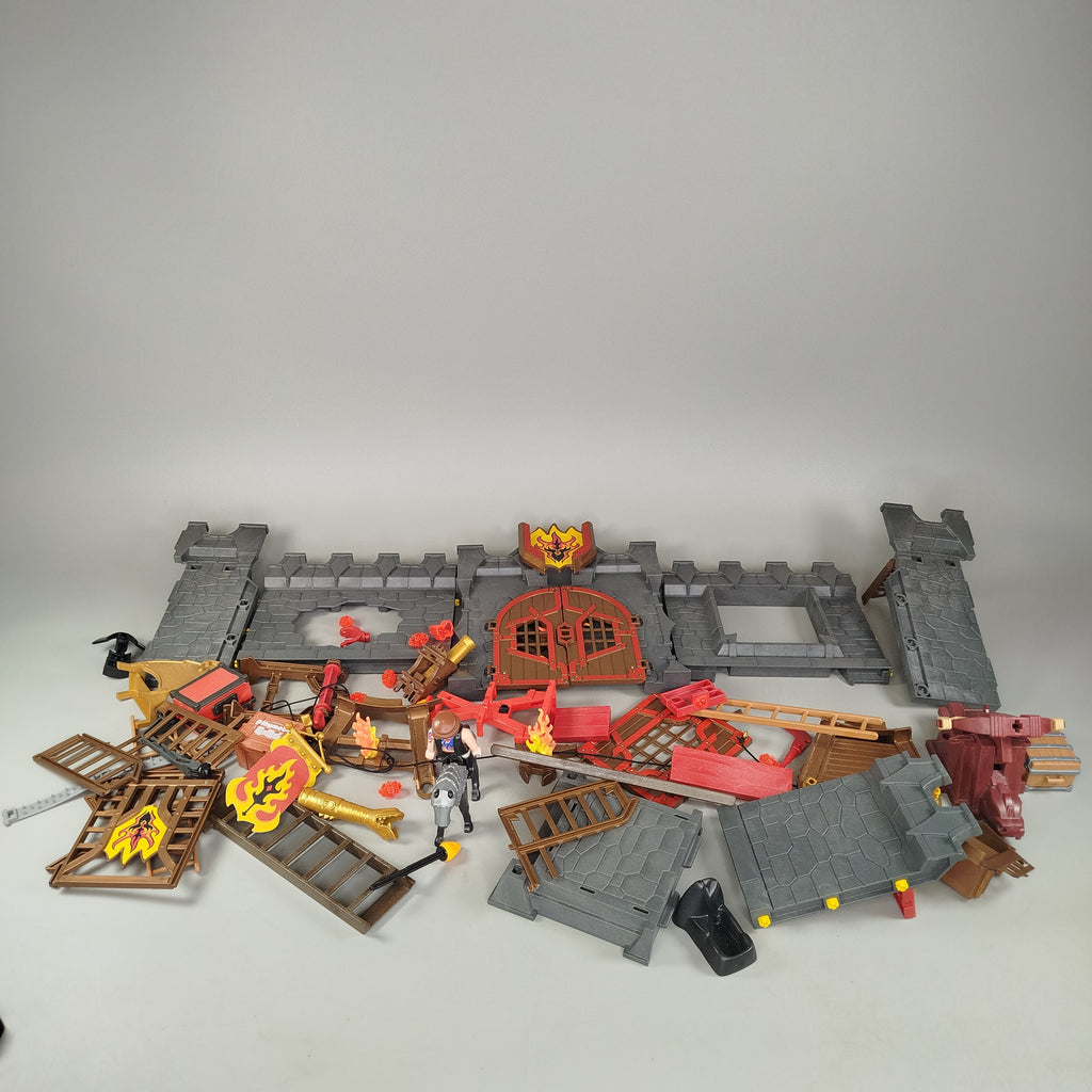 Hol dir das Playmobil Burgset der Burnham Raiders und stürze dich in feurige Ritterabenteuer! Dieses detailreiche Spielset enthält verschiedene Burgmauern, Türme, Tore, Leitern, Waffen, Schilde mit Flammen-Emblem, ein Lagerfeuer, ein Lavaelement sowie ein schwarzes Streitross mit abnehmbarer Rüstung. Ideal für fantasievolle Rollenspiele rund um Ritter und Burgen. Das Set befindet sich in gutem, gebrauchten Zustand mit leichten Gebrauchsspuren. Verpackung und Anleitung fehlen, die Vollständigkeit konnte nicht überprüft werden. Hinweis: Enthält Kleinteile, nicht geeignet für Kinder unter 3 Jahren. Gib diesem Spielzeug ein neues Zuhause und erwecke den Rittergeist aufs Neue!