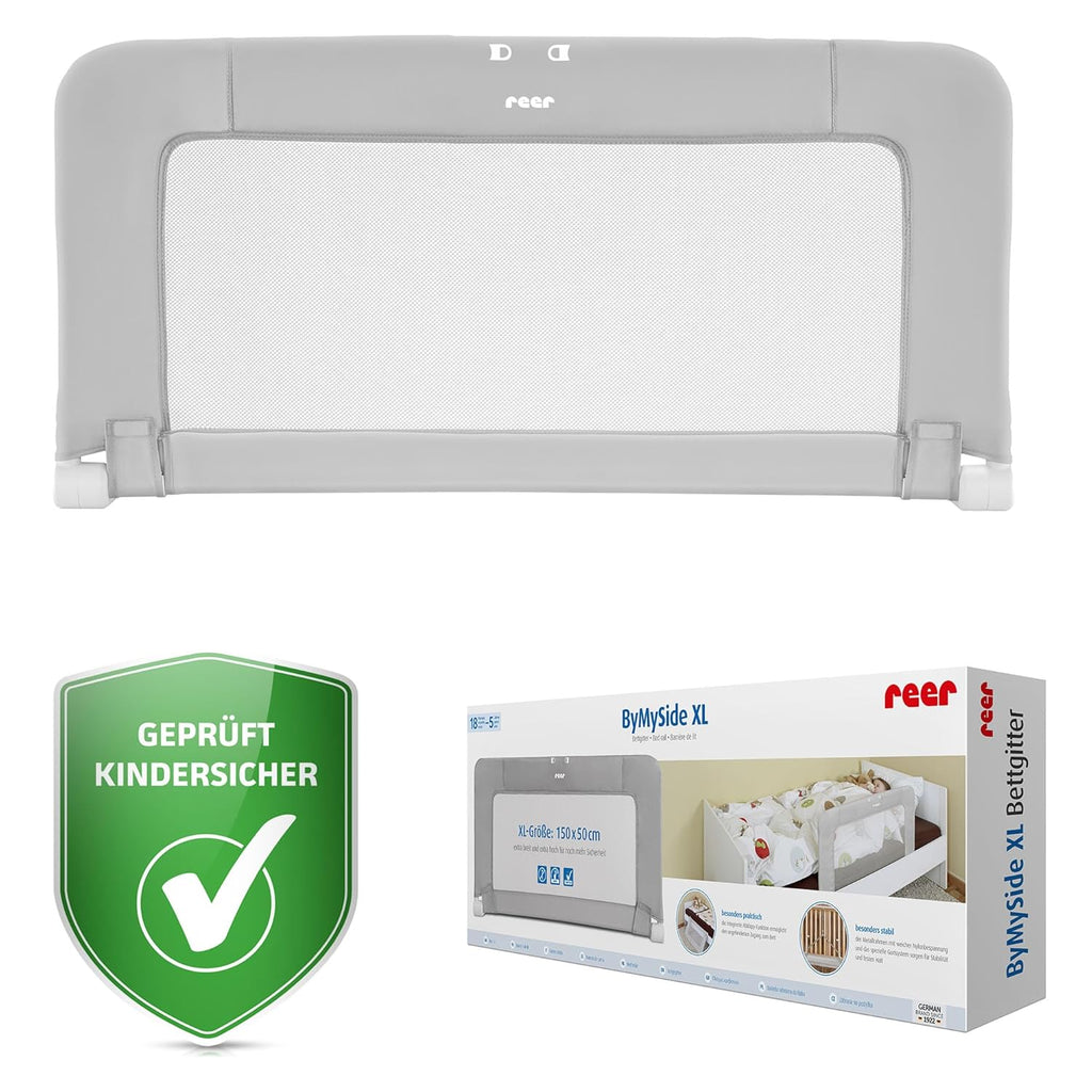 Reer ByMySide, Rausfallschutz fürs Babybett, 150x50 cm Länge, für Betten von 180 - 210 cm, grau