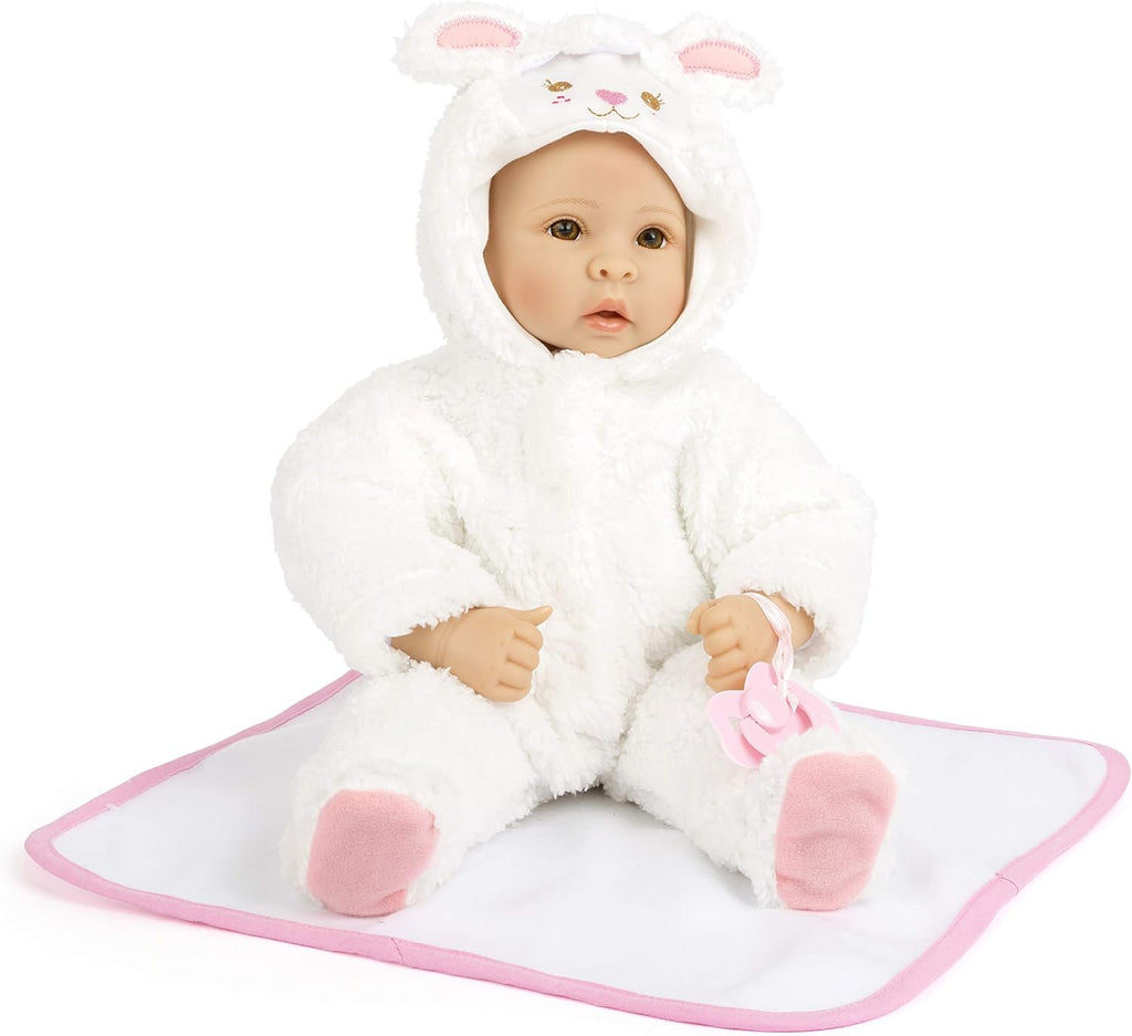 Produktbeschreibung Einfach zu verwöhnen! Diese süße Puppe wird im Handumdrehen das Herz Ihrer Kinder gewinnen! Er hat einen weichen und kuscheligen Einteiler im Schaf-Design, mit Schnuller und Schmusetuch, bereit zum Schlafen. Kopf, Füße und Hände dieser detaillierten Puppe sind aus den besten stabilen Gummiformen gefertigt. Der Körper ist aus einem weichen, natürlichen Material gefertigt und dank seines geringen Gewichts kann er leicht sitzen. Diese Puppe darf in keinem Kinderzimmer fehlen. Der Körper ist aus einem weichen, natürlichen Material gefertigt und dank seines geringen Gewichts kann er leicht sitzen. Diese Puppe darf in keinem Kinderzimmer fehlen. Warnhinweise 0