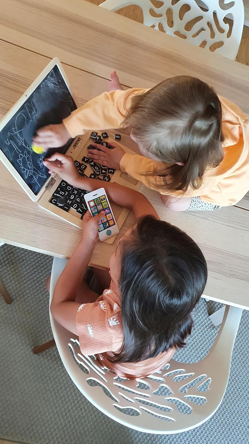 - Holz-Laptop mit 78 Magneten, 1 Schwamm, 1 Handy, 2 Kreidestücken
