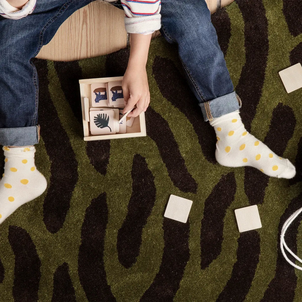 Der Safari Teppich von Ferm Living ist ein weicher Kinderteppich aus 100% Neuseeland-Wolle mit Rückseite aus Baumwolle. Das Modell überzeugt durch sein grünes Design in Tiger- oder Leopardenform und eignet sich ideal für das Kinderzimmer. Mit den Maßen 160 x 118 x 0,5 cm und einem Gewicht von 5,1 kg sorgt der Safari Teppich für Komfort und Dekoration. Der Teppich ist unter der EAN 5704723022138 gelistet und gehört zur Kategorie Wollteppiche, Ferm Living Teppiche und Kinderteppiche.