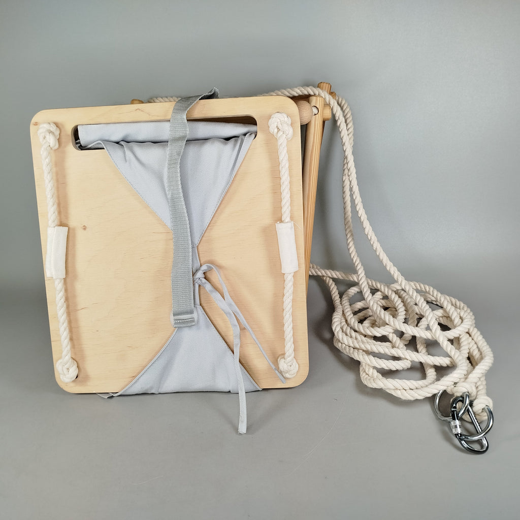 Hol dir die gemütliche Holzschaukel und bring Bewegung ins Kinderzimmer oder auf die Terrasse! Das Set enthält eine robuste Holzsitzfläche, zwei weiche Stoffkissen, zwei verstellbare Gurte mit Kunststoffschnallen sowie stabile Seile mit Metallkarabinern zur Aufhängung. Die Schaukel zeigt leichte Gebrauchsspuren und befindet sich in gutem Zustand. Die Vollständigkeit konnte nicht überprüft werden und eine Originalverpackung liegt nicht vor. Perfekt, um spielerisch Balance und Koordination zu fördern.