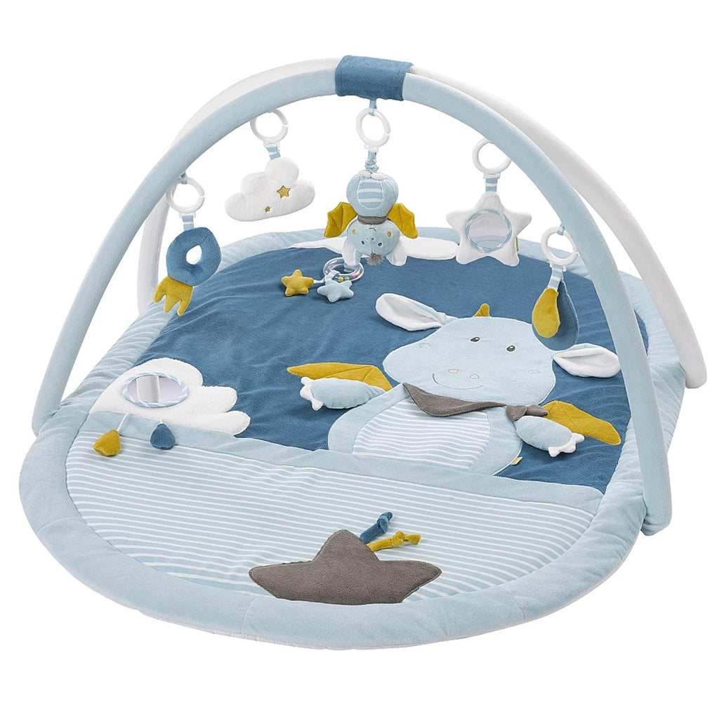 - BEQUEM and SICHER Die ovale Spielmatte mit gepolsterter Liegefläche ist kuschelweich und schützt Mädchen und Jungen optimal bei der Erkundung der Welt des furchtlosen Drachen und der frechen Fledermaus
