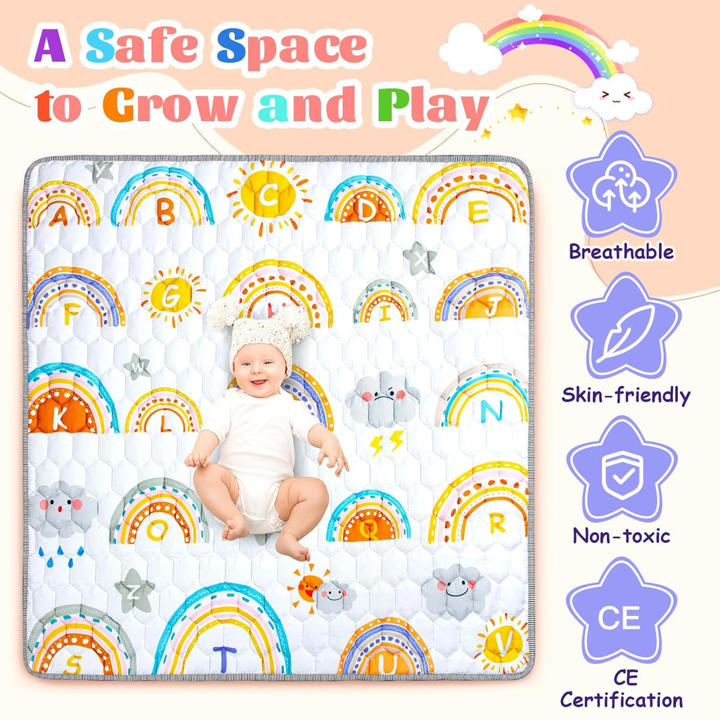 Amüsant Pädagogische Spielmatte: Das Design der Funsland Baby spielmatte verfügt über bunte Regenbogenwettermuster, die Babys helfen, verschiedene Farben von klein auf zu erkennen und englische Buchstaben zu lernen