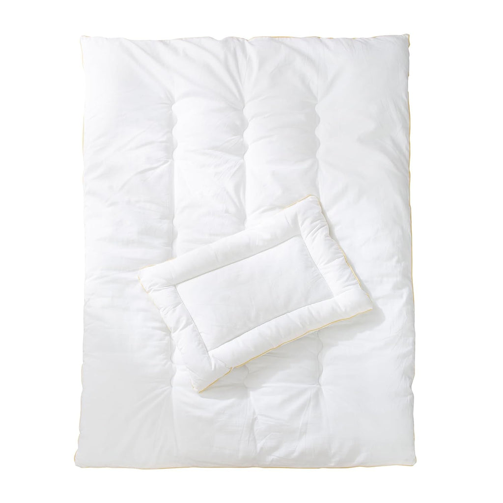 Dieses Baby-Bettset verbindet kuschelige Nestwärme mit den höchsten Ansprüchen an Hygiene. Die Füllung ist aus 100 % hautsympathischen Markenpolyesterfasern, die auch bei häufigem Waschen formbeständig bleibt. Der Bezug besteht aus hochwertiger Baumwolle (100 %), die zu einem besonders glatten, anschmiegsamen und flusenfreiem Stoff verarbeitet wurde. Für ein rundum behagliches Bettklima von Anfang an. Roba Baby-Bettset (Inlett): Außenmaterial: 100 % Baumwolle, Füllung: 100 % Polyester, bestehend aus Steppbett 100 x 135 cm und Kissen 40 x 60 cm