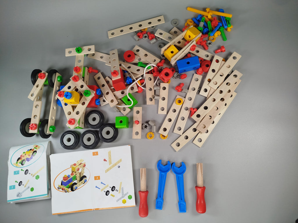 Dieses Baukasten-Bundle besteht aus zwei hochwertigen Holzspielzeugen: Die klassische Haba Kugelbahn mit bunten Kurven, Rampen und Kugeln fördert das Verständnis für Schwerkraft und Bewegung – ideal für erste physikalische Experimente. Ergänzt wird das Set durch den umfangreichen Eichhorn Constructor Baukasten, der kreative Bauprojekte wie Fahrzeuge, Kräne und mehr ermöglicht. Enthalten sind viele Teile aus Holz und Kunststoff, Werkzeuge und eine bebilderte Anleitung.Ideal geeignet für Kinder im Vorschul- und Grundschulalter, die bauen, forschen und entdecken wollen.Hinweis: Nicht geeignet für Kinder unter 3 Jahren – verschluckbare Kleinteile.