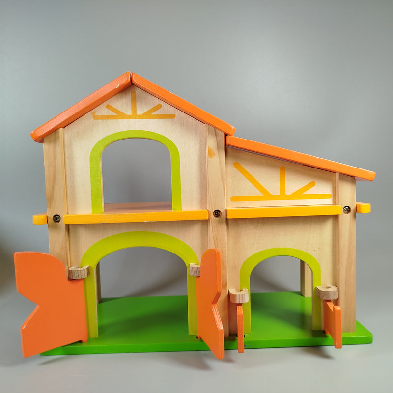 Hol dir das Bauernhof-Spielset aus Holz und lass die Fantasie deines Kindes erblühen! Dieses Set enthält ein bunte Bauernhofhaus, zwei stabile Baumfiguren, eine Scheune, einen Traktor und fünf liebevoll gestaltete Holzfiguren, darunter ein Bauer, eine Bäuerin sowie vier Bauernhoftiere: Kuh, Schwein, Hund und Ente. Es ist perfekt für kreative Rollenspiele und pädagogisches Spielen gedacht. Gib diesem Holzspielzeug ein neues Zuhause und fördere umweltfreundliches Spielen. Das Set kommt in einem nicht spezifizierten Karton. Der Zustand des Sets ist neuwertig ohne Originalverpackung. Hinweis: Geeignet für Kinder ab 3 Jahren. Enthält keine Kleinteile und bietet somit ein sichereres Spielumfeld.