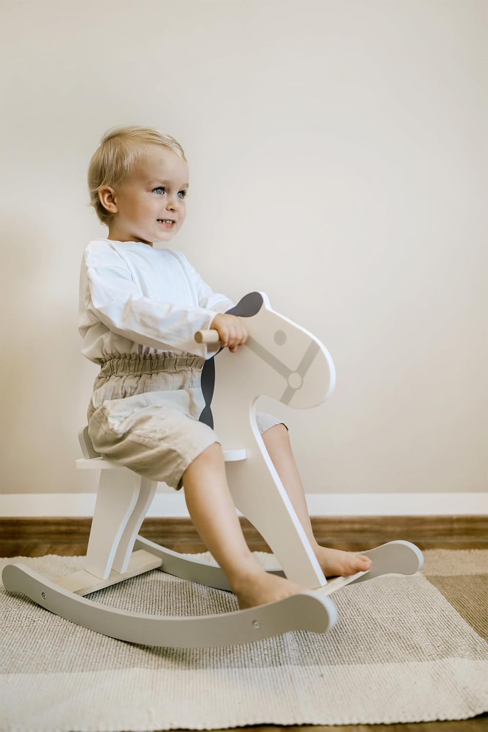 small foot Schaukelpferd Skandi aus Holz, mit Rückenlehne und zwei festen Griffen, für Kinder ab 3 Jahren, 11523